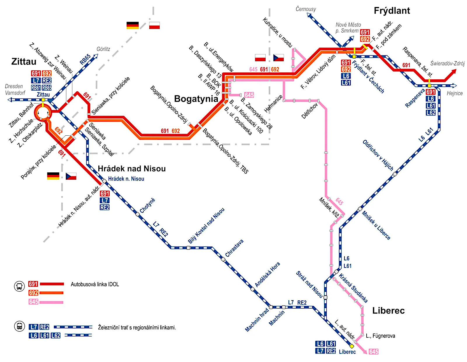 Novou autobusovou linku bude pod číslem 645, 691 a 692 provozovat nejspíš český dopravce ČSAD Liberec – stejně jak tomu bylo u linky 691 v roce 2020 kdy tato nějakou dobu v daném roce existovala a jezdila.